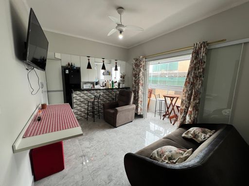 Apartamento com 01 dormitório na Vila Caiçara , Praia Grande/SP. Prédio localizado ao lado do centro comercial e vista ao mar. Apartamento com 01 dormitório, 01 suíte, sala 02 ambientes, cozinha e sacada gourmet. Acabamento em todos os ambientes, planejados na cozinha e dormitórios, móveis soltos, eletrodomésticos e eletroeletrônicos, banheiro com gabinete e box. Distribuído em 50 m² de área útil e 1 vaga de garagem. Lazer com Piscina, Espaço Gourmet, Sala de Jogos, Salão de Festas, Sauna e Brinquedoteca. Formas de pagamento: À vista ou repasse de divida. *Valores sujeito à alteração sem aviso prévio*