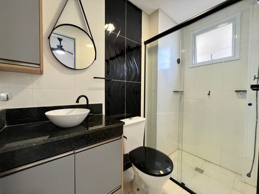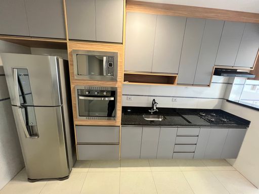 Acabamento em todos os ambientes, planejados na cozinha e dormitórios, móveis soltos, eletrodomésticos e eletroeletrônicos, banheiro com gabinete e box.