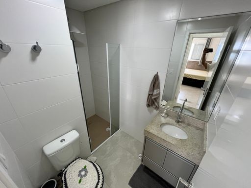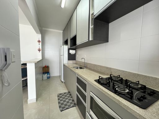 Apartamento com 01 dormitório, sendo 01 suíte, 1 WC social, sala 02 ambientes, cozinha americana, sacada gourmet com churrasqueira à gás.