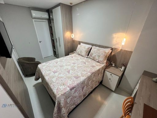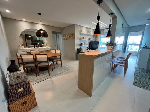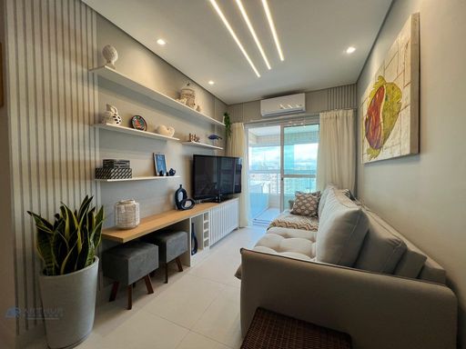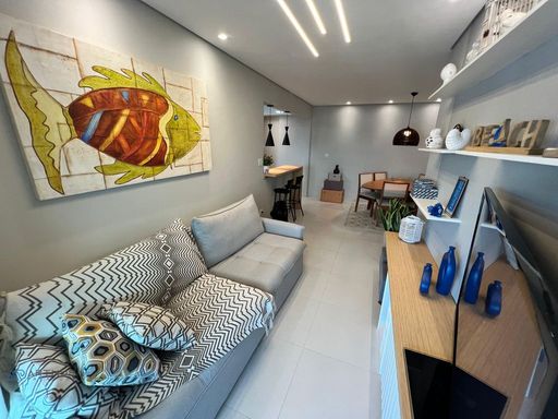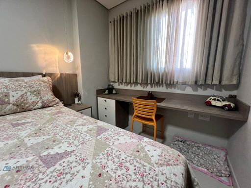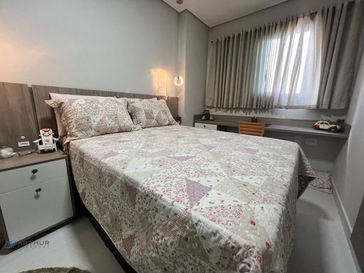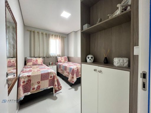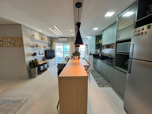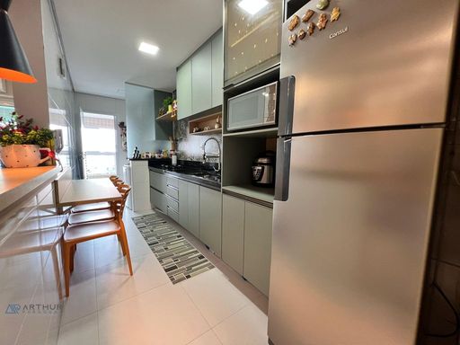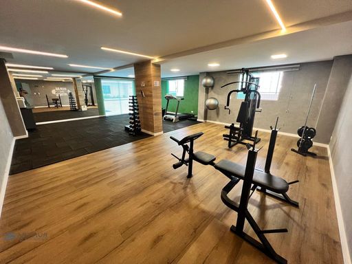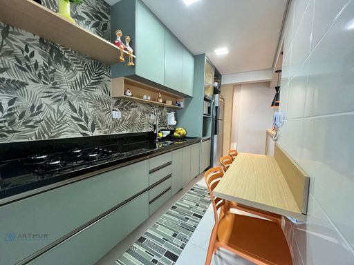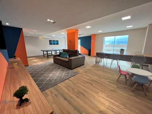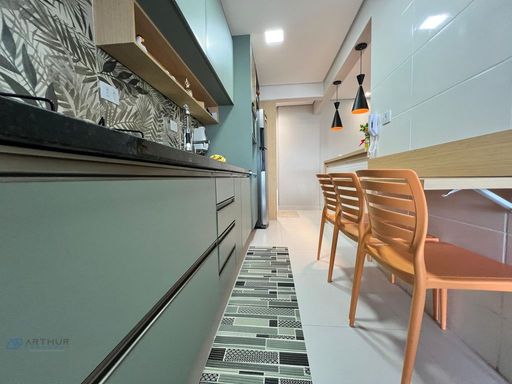 Apartamento com 02 dormitórios, 1 dormitório social, sala 02 ambientes, cozinha americana, sacada gourmet com churrasqueira ecológica ou elétrica.
