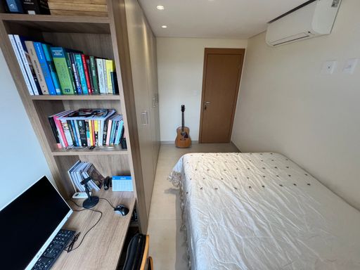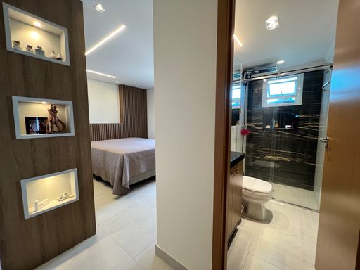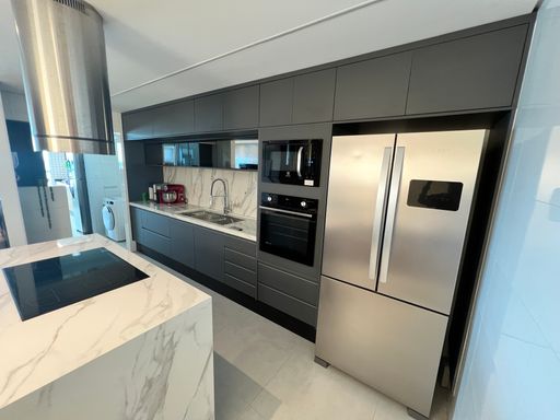 Acabamento em todos os ambientes, planejados na cozinha e dormitórios, móveis soltos, eletrodomésticos e eletroeletrônicos, banheiro com gabinete e box.